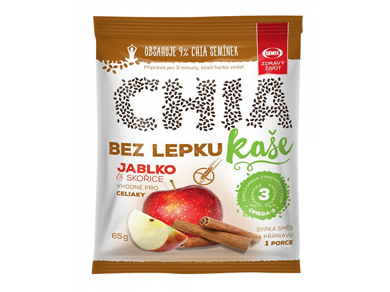 Sypká směs na přípravu Chia kaše jablko & skořice bez lepku. Tato kaše obsahuje ve 100 g 1,75 g kyseliny alfa-linolenové (z řady omega-3 mastných kyselin), která přispívá k udržení normální hladiny cholesterolu v krvi. Příznivého účinku se dosáhne při příjmu 2 g této kyseliny denně. Pro udržení...