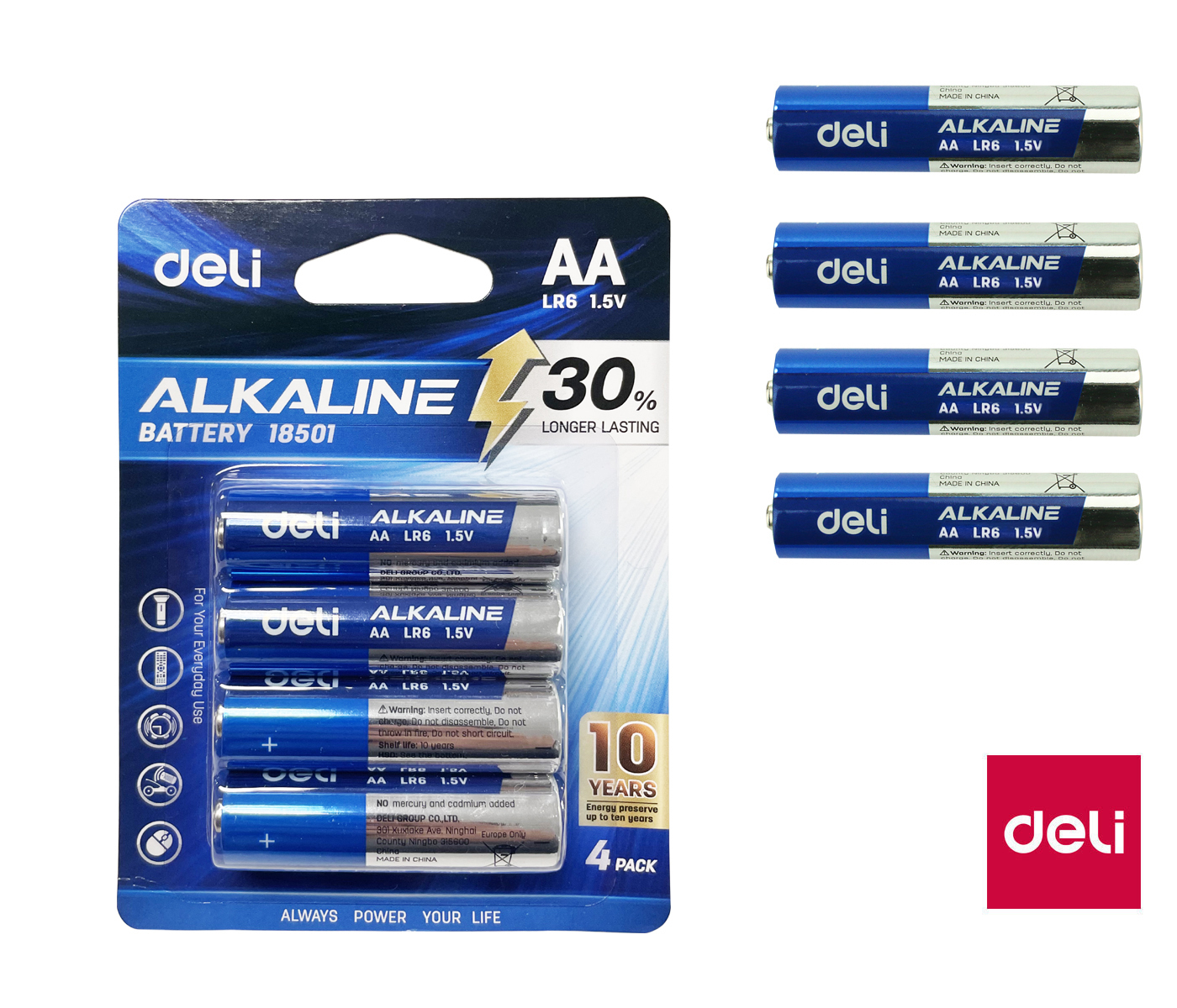 Baterie alkalická AA tužková LR6 4ks DELI E18501