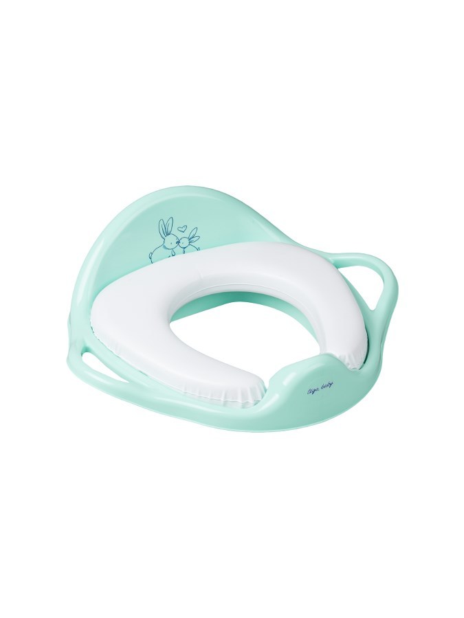 Dětské barevné sedátko na WC měkké s obrázkem králička. Vyrobené z kvalitního plastového materiálu. Je lehce omývatelné a díky svému tvaru zaručuje Vašemu dítěti bezpečí a pohodlí. Zvýšená přední část zabraňuje úniku moči. Má plastové úchyty a sedací část je měkká a potažená PVC. Ideální pro děti, které se učí samy chodit na záchod. Sedí ke většině záchodových prkének. Rozměry: cca 38x32 cm. Vhodné pro děti od 18 m, do 25 kg.
