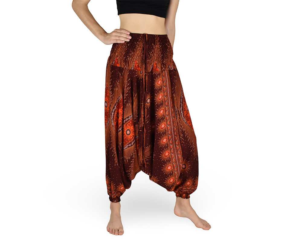 Harémové kalhoty aladin NATSU, plankton, hnědá, se šňůrkou, plamínky v pase