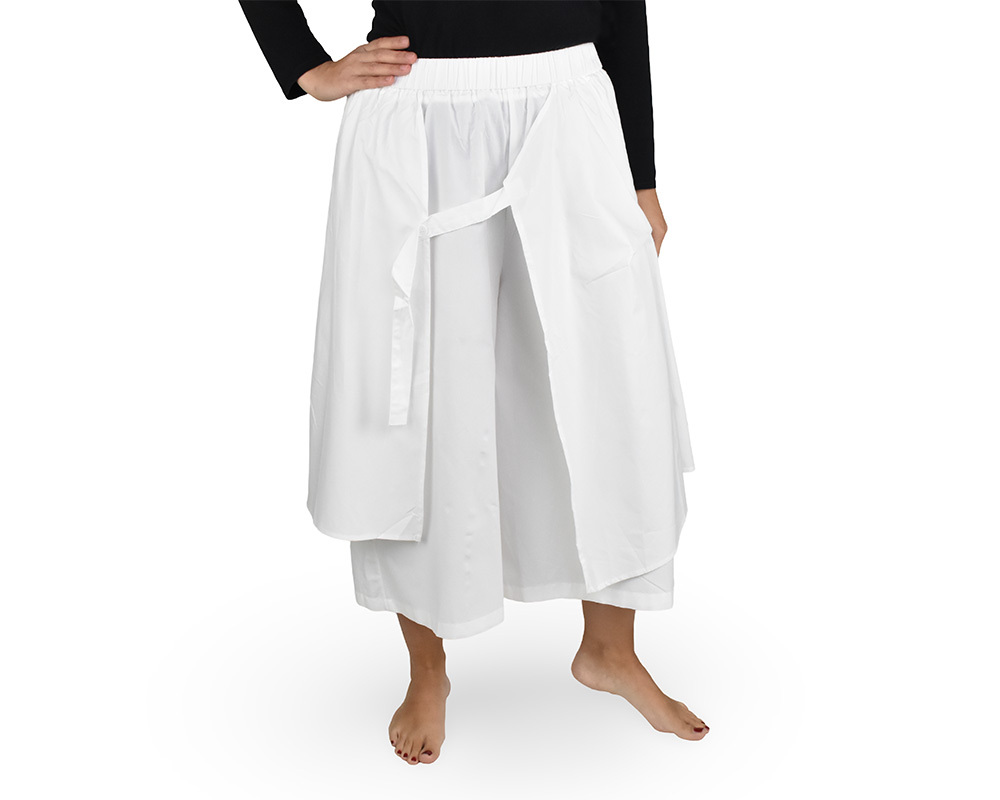 Originální Kalhoty Japan přinášejí netradiční střih inspirovaný japonskou módou. Zaujmou kombinací pohodlných capri kalhot s širokými nohavicemi a s open sukní ze zadní části. Ta se elegantně zapíná ve předu na knoflík s prodlouženým poutkem, čímž vytváří jedinečný a stylový detail. V pase je...