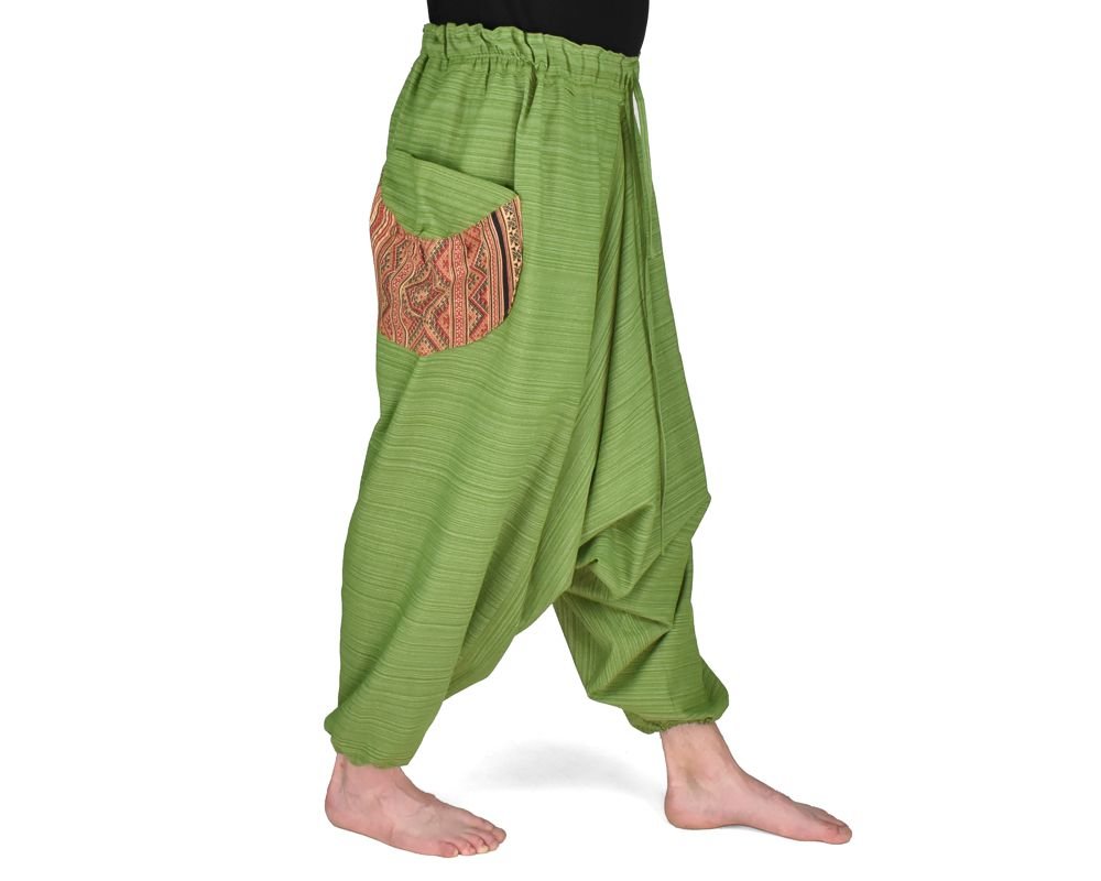 Trendy turecké (harémové) kalhoty, jednobarevné, velmi slušivé a pohodlné.Popis: elastický pas se šňůrkou, gumička na konci nohavic, snížený sed, široké nohavice, jedna barevná kapsaKalhoty jsou z velmi příjemného materiálu. 100% bavlna.