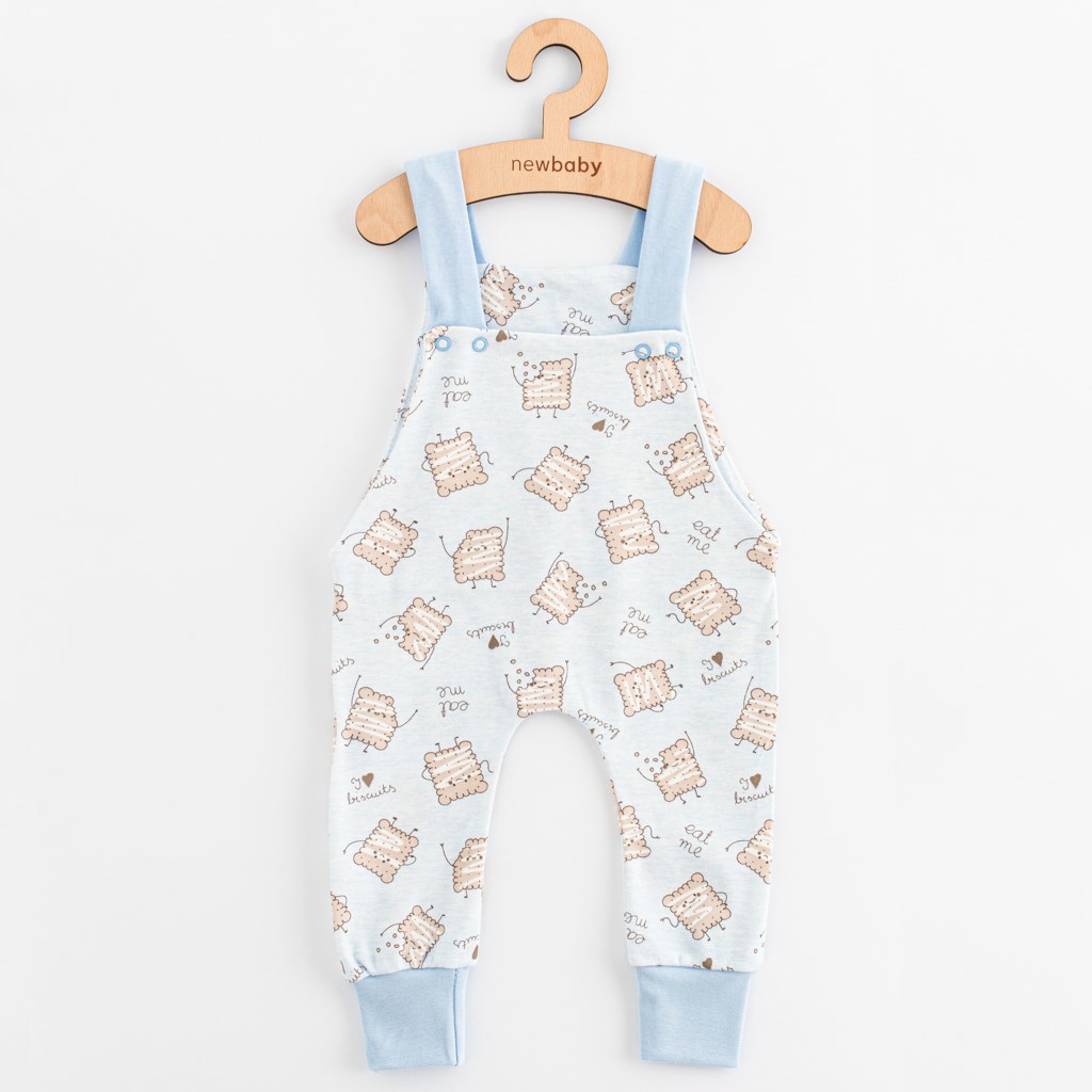 Praktické kojenecké lacláčky české značky New Baby Biscuits s moderním designem celopotištěné sušenkami. Zapínají se na ramínkách, což je velmi praktické při oblékání. Jsou velmi vhodné pro malé děti při dětských aktivitách, kde zádička jsou stále přikrytá. Příjemný, měkký a kvalitní teplákový materiál zaručuje velké pohodlí během nošení. Složení: 100% bavlna.