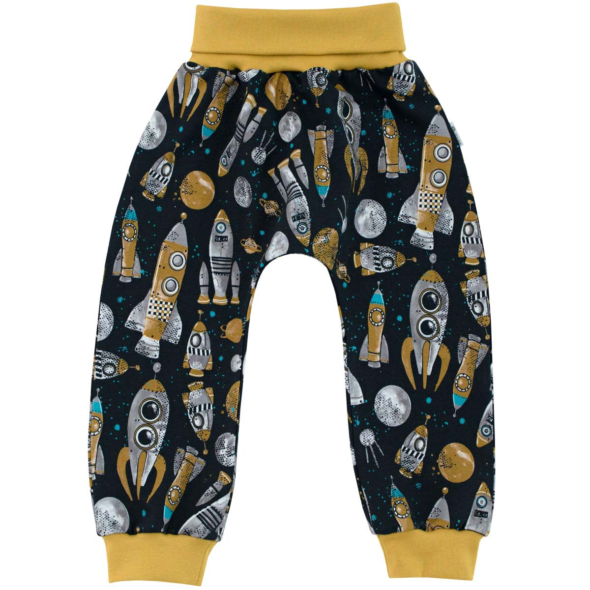 Popis: Kojenecké tepláčky s digitálním potiskem "Rakety" jsou určené zejména pro chlapce. Stylové dětské tepláky vhodné na jakoukoliv aktivitu. Moderní a pohodlný střih typu pudl, pudlo, parkour. Kojenecké tepláky jsou vyrobeny z kvalitní bavlny. V pase je pružný lem z BIO bavlny s elastanem -...