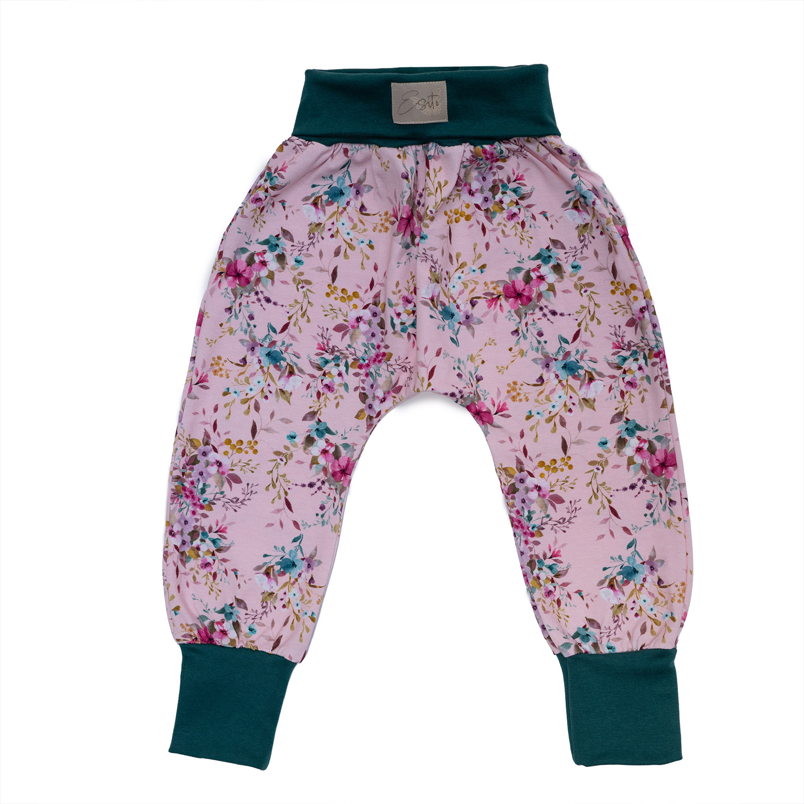 Rostoucí dětské tepláky Květinky; Barva: růžová; Velikost: 74