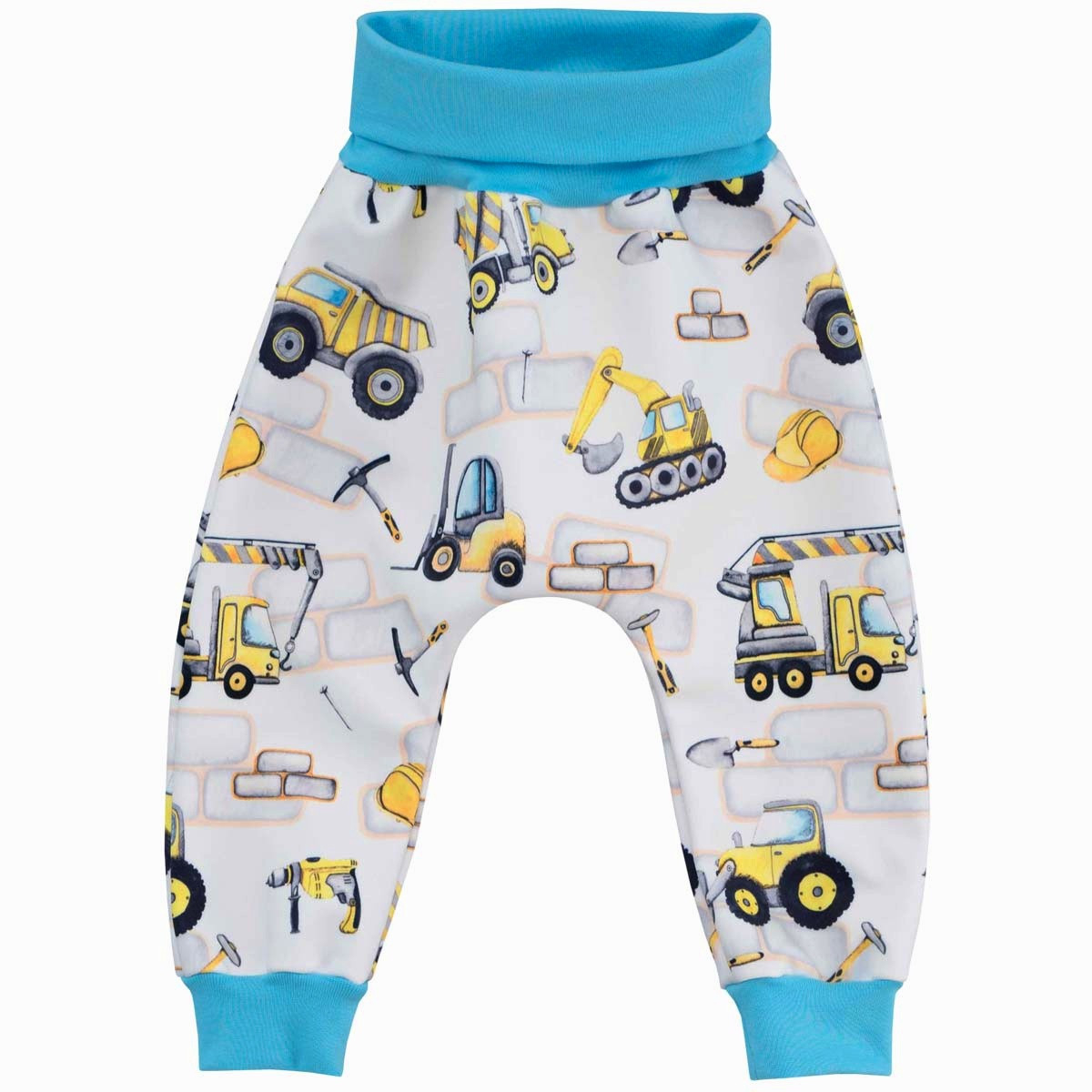 Dětské softshellové kalhoty Stavební stroje vel. 62 - 80; Barva: tyrkysová; Velikost: 62