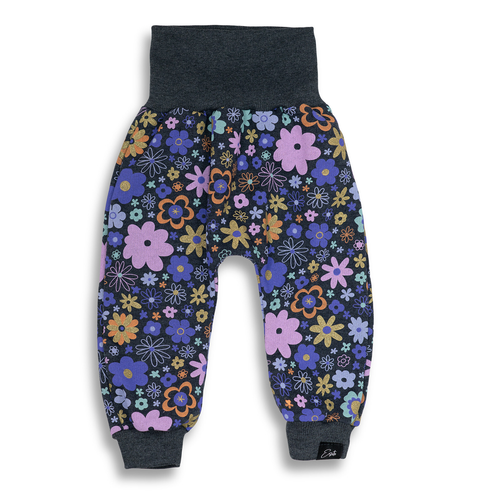 Dětské tepláky s vysokým pasem Grafit Podzimní květy; Barva: šedá; Velikost: 74