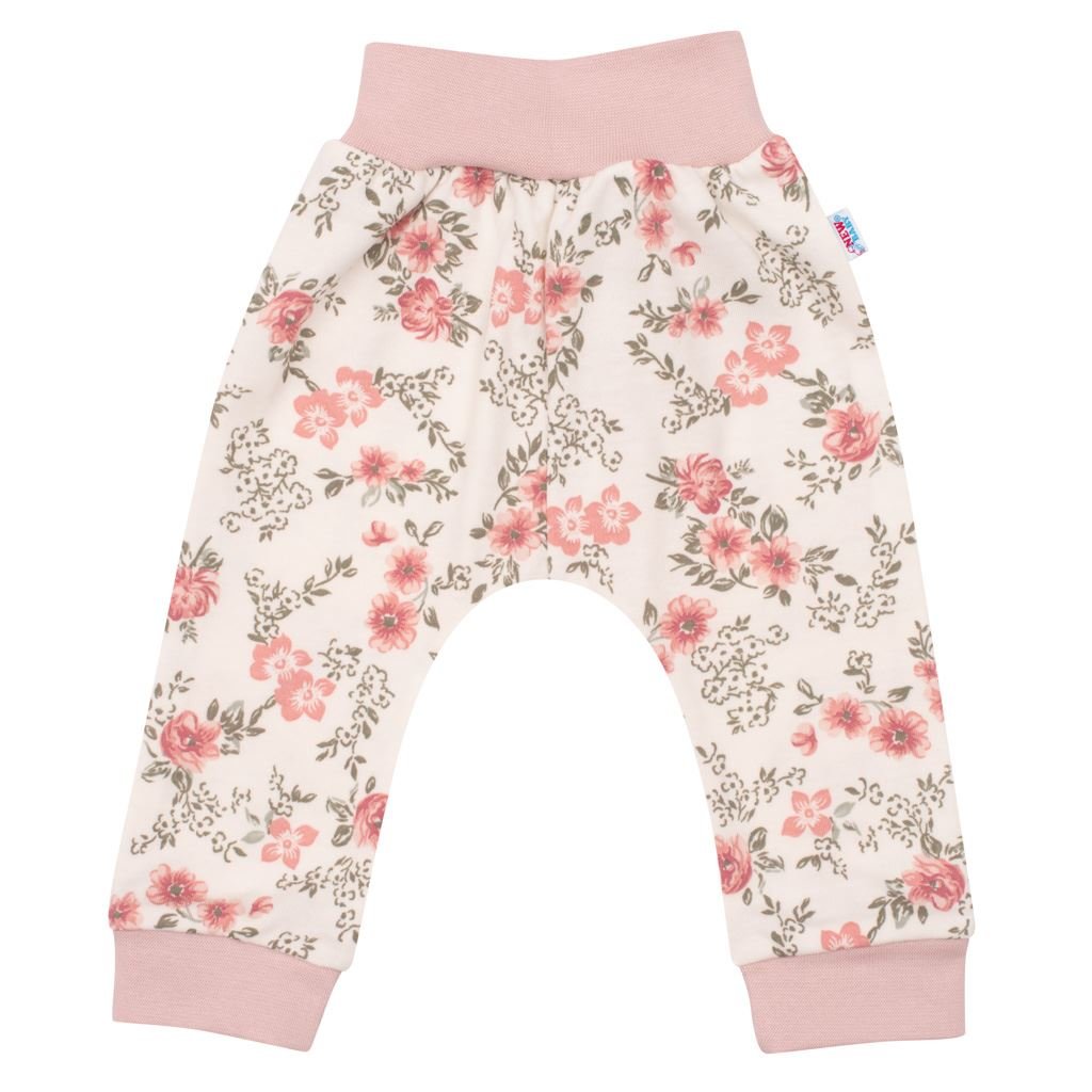Kojenecké tepláčky české značky New Baby Flowers pro všechny malé parádnice. Tepláčky jsou celopotištěné krásnými barevnými květinami. V pase a na nohavičkách mají široký pružný lem, který netlačí. Moderní vzhled a správný šmrnc dodává tepláčkům snížený sed. Složení: 100% bavlna.