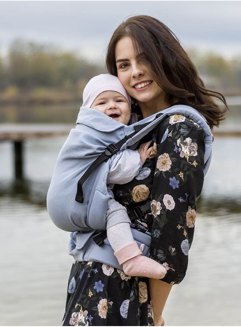 Rostoucí ergonomické nosítko Multi Grow Little Herringbone Blue ze 100% bavlny s žakárovou vazbou od značky Kinder Hop vám vydrží na celé nosící období. Je vhodné pro děti od 3,5 kg (3,4 měsíce) až do 3 let (20 kg). Nosítko Multi Grow má nastavitelný bederní pás, zádovou opěrku, měkce polstrované ramenní popruhy s možností křížení na zádech. Je velice pohodlné a vhodné i pro rodiče trpící bolestmi páteře.