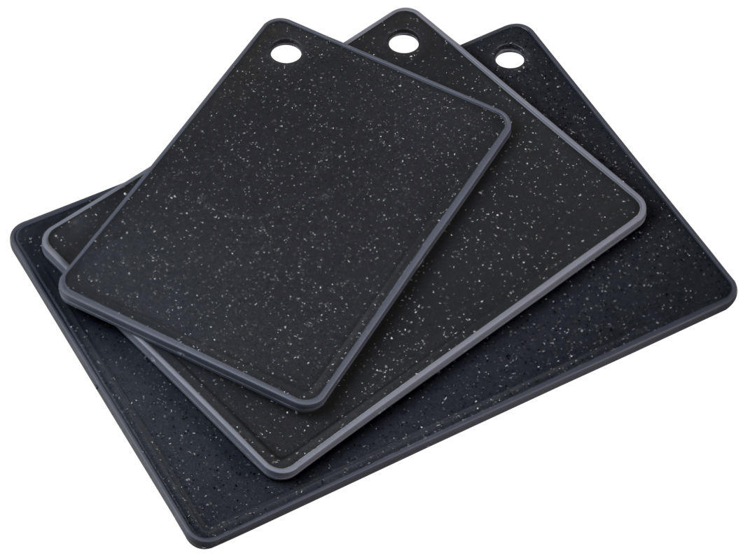 Sada tří plastových prkének KESPER s protiskluzovou úpravou a speciální skloněnou plochou, která zachycuje tekutiny z potravin, je ideální volbou pro bezpečné a čisté krájení v každé kuchyni.  prečítať celé