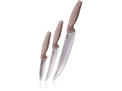 Nože TRINITY CULINARIA HN, sada 3díl.sada obsahuje:- praktický nůž 18,5 a 23,5 cm- porcovací nůž 32 cm hnědá rukojeťOcelové nože patří mezi nepostradatelné pomocníky v každé kuchyni. Výběr vhodného nože nám usnadní krájení či porcování potravin. prečítať celé