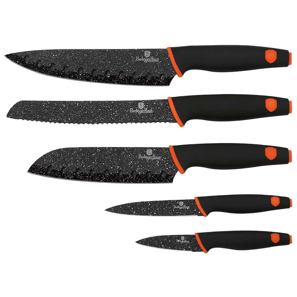 Sada nožů s mramorovým povrchem 5 ks Granit Diamond Line černá / oranžová