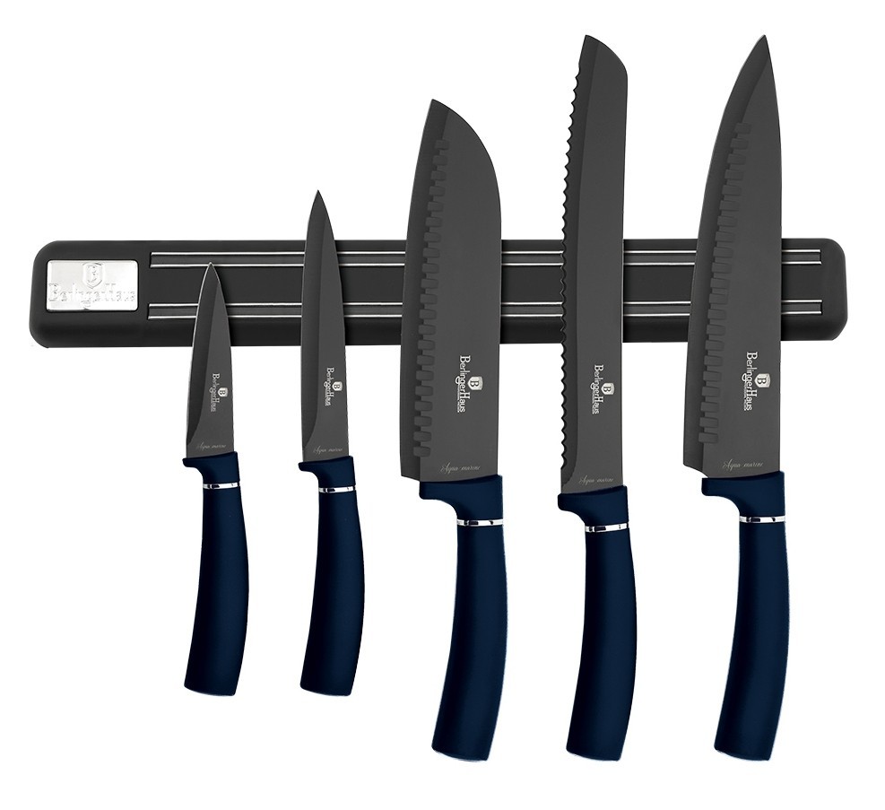 Sada nožů s magnetickým držákem 6 ks Aquamarine Metallic Line BERLINGERHAUS BH-2537