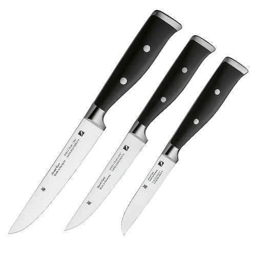 Set kuchyňských nožů Grand Class značky WMF, které jsou vyrobeny ze speciální vysoce kvalitní nožířské oceli.Ergonomické rukojeti z velmi odolného plastu, které jsou s čepelí spojeny dvěma nýty. Výborně padne do ruky. Hladký přechod mezi rukojetí a záštitou.Grand Class je klasická série kovaných...