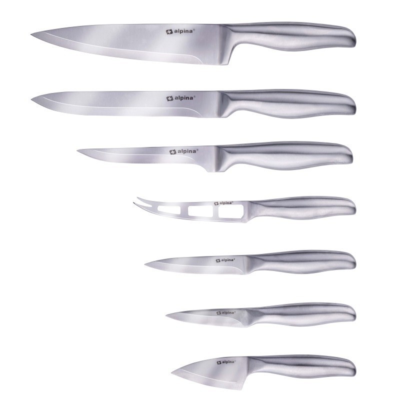 Hledáte sadu nožů pro všechny možné účely? Tato sada nožů alpina obsahuje 7 různých nožů, včetně kuchařského nože, nože na maso, nože na sýr a krájecího nože. Takže s tím můžete jít oběma směry. Nože jsou všechny vyrobeny z nerezové oceli, takže je lze bez poškození vložit do myčky...