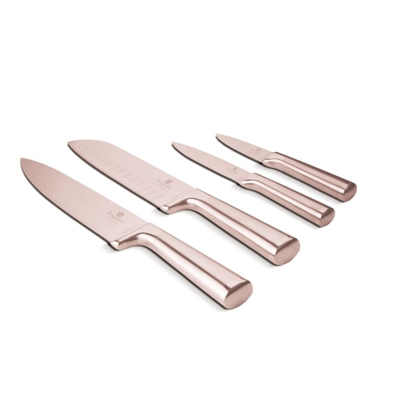 Materiál: nerezová ocel 3cr13 s rukojetí v saténovém a zrcadlovém lesku.Kuchařský nůž 20 cmNůž Santoku 17,5 cmUžitkový nůž 12,5 cmNůž na okrajování 9 cmMagnetická dárková krabičkaBarva: růžovo-zlatá rose goldvysoce kvalitní nerezová ocelTepelně zpracovaná čepelOchrana prstůRučně broušenýElegantní...