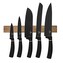 Materiál: nerezová ocel s černou nepřilnavou vrstvouKuchařský nůž 20 cmNůž na chléb 20 cmNůž Santoku 17,5 cmUžitkový nůž 12,5 cmNůž na okrajování 9 cmMagnetický držák na stěnu z akátového dřevaBarva: černo-růžově zlatáČEPELE VYROBENÉ NOVOU VÝROBNÍ TECHNOLOGIÍAntibakteriálníNezanechává...