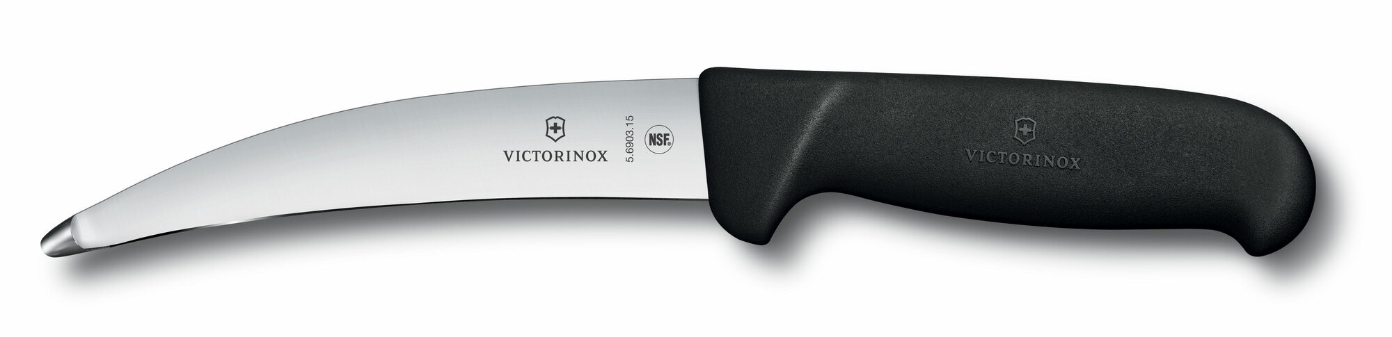 Vyvrhovací nôž. Vďaka ostrej čepeli smerujúcej nadol budú môcť poľovníci bez námahy pitvať vnútornosti alebo vykosťovať ryby. Rovnako je ideálny na spracovávanie a čistenie čriev v priemyselných závodochspracovávajúcich mäso. Masívna zatupená špička čepele zamedzuje porušeniu vnútorností a podieľa sa tak významnou mierou na jedinečnom prevedení tohto noža. Zakončuje to hygienická a ergonomická rukoväť radu Fibrox s protišmykovou úpravou.