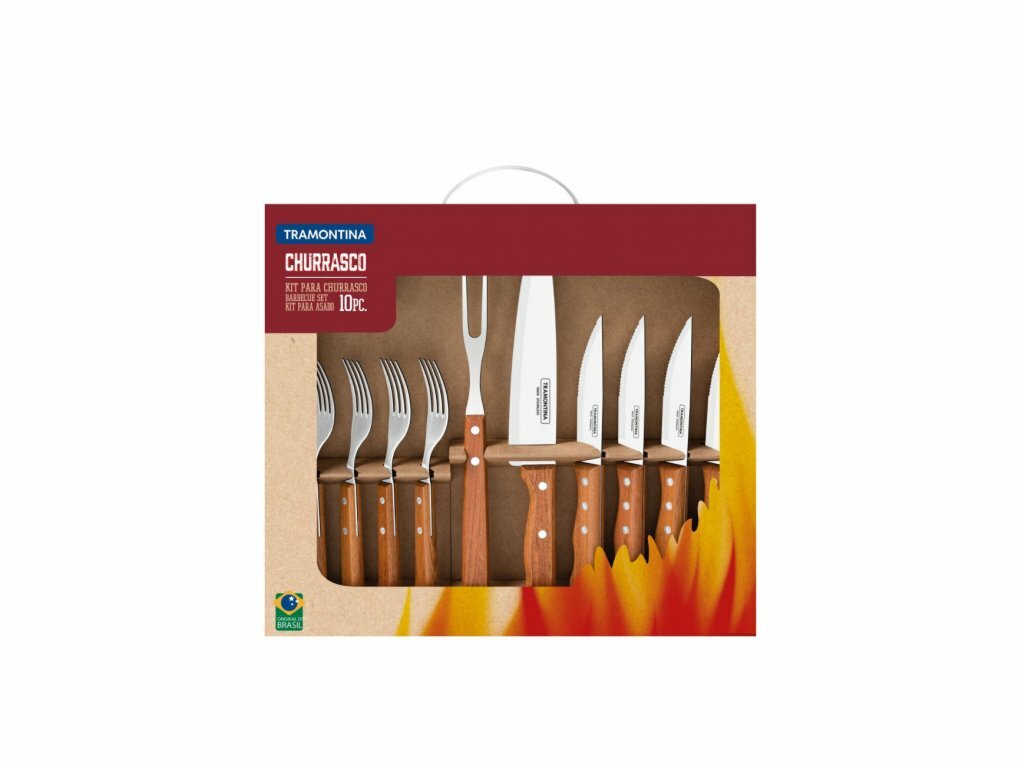 10-dielny príborový set na grilovanie Tramontina 22399/037 Dynamic BBQ s rustikálnym vzhľadom, ideálny pri grilovaní a je špeciálne navrhnutý na rezanie steakov a iných druhov mäsa.