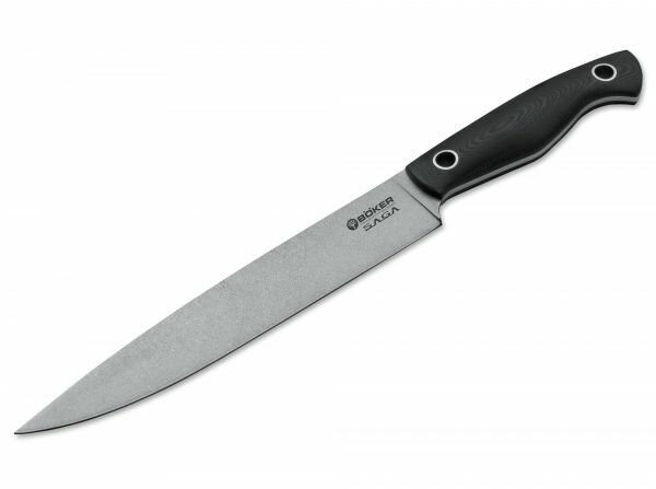 Rezací nôž Böker Manufaktur Solingen Saga s dlhým štíhlym tvarom, je vhodný na presné krájanie mäsa a rýb, na krájanie extra jemných plátkov, kociek alebo rovnomerne silných častí.