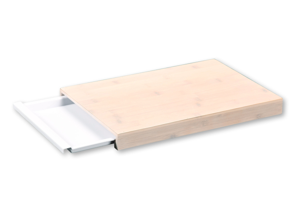 KESPER Krájecí deska s odkapávací miskou, bambus bílá glazura, 38 x 3,5 x 25,5cm