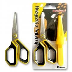 Długość 135 mm, grubość ostrza 2,0 mm. Wykonane z wysokiej jakości stali nierdzewnej. Ostrza polerowane, odporne na stępienie. Ergonomiczny uchwyt z wkładką z miękkiego tworzywa, zwiększającą komfort użycia. Kabura ochronna w wyposażeniu umożliwia mobilne posługiwanie się nożyczkami.