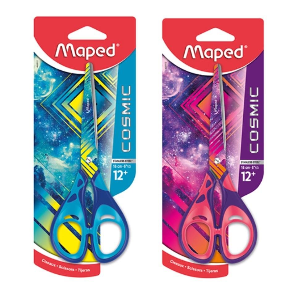 Nożyczki COSMIC z malowanymi ostrzami. Miękkie wewnątrz, symetryczne uchwyty. Dwie wersje kolorystyczne - różowe i niebieskie ozdobione kosmicznymi grafikami. Towar wysyłany losowo.Długość 16 cm. prečítať celé
