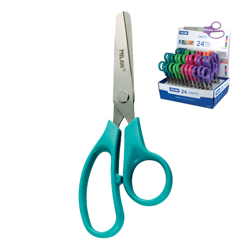 Školní nůžky s plastovou rukojetí. Délka 13,4 cm. Čepel z nerezové oceli se zaoblenými konci. K dispozici v 5 barvách (mix). prečítať celé