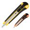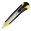 Ořezávací nůž malý s pogumovanou držadlem, s nastavitelnou vysouvací a olamovací čepelí 9mm. Rozměr: 140x30x13 mm. prečítať celé
