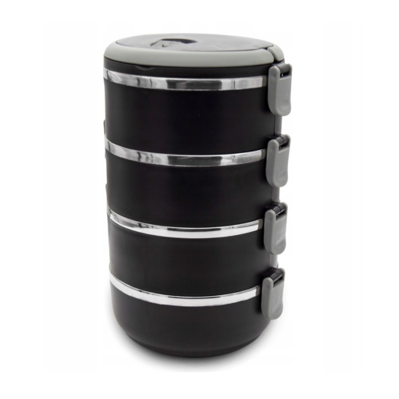 Tento plastový nosič jedla je zložený zo 4 praktických misiek s objemom 0,5 litra každá, čo vám umožní prenášať rozmanité chute a porcie v jednom kompaktnom balení. Vnútorná časť z nerezu zabezpečuje odolnosť a bezpečnosť pre vaše jedlo, zatiaľ čo vonkajšie plastové prevedenie zaručuje ľahkosť a jednoduchú manipuláciu. Vďaka dvojitej stene síce nemá vákuové termo vlastnosti, ale napriek tomu udrží teplotu pokrmov približne 2,5 až 4 hodiny, čo je ideálne na dlhšie výlety či pracovné obedy.