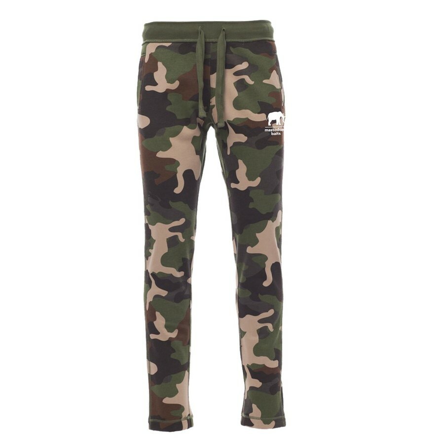 Pánské kalhoty z teplákoviny v barvách camou, elastický pas s barevně sladěnou stahovací šňůrkou, poklopec na zip v rozkroku, dvě přední kapsy a jedna zadní kapsička, zesílené švy, ozdoby s vintage efektem, vnitřní etiketa s individuálním designem.