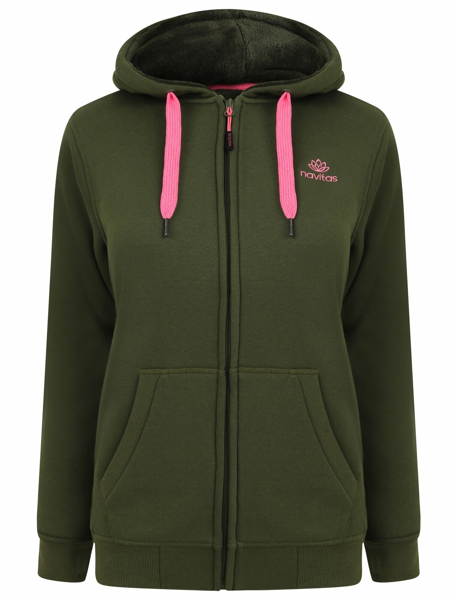 Dámská mikina Sherpa Hoody je vyrobena ze super měkké bavlněné tkaniny a má dobře padnoucí střih. Má všechny drobné detaily, které u produktů Navitas již očekáváte a je podšitá úžasně příjemným Sherpa fleecem. Skvěle zahřeje a ještě udělá u vody parádu! Specifikace: • Materiál: 35% bavlna, 65% polyester / 300 gsm • Podšívka z Sherpa fleece • 2 postranní kapsy na zip • Zip po celé délce • Růžové šňůrky na kapuci • Vyšitá loga v růžové barvě