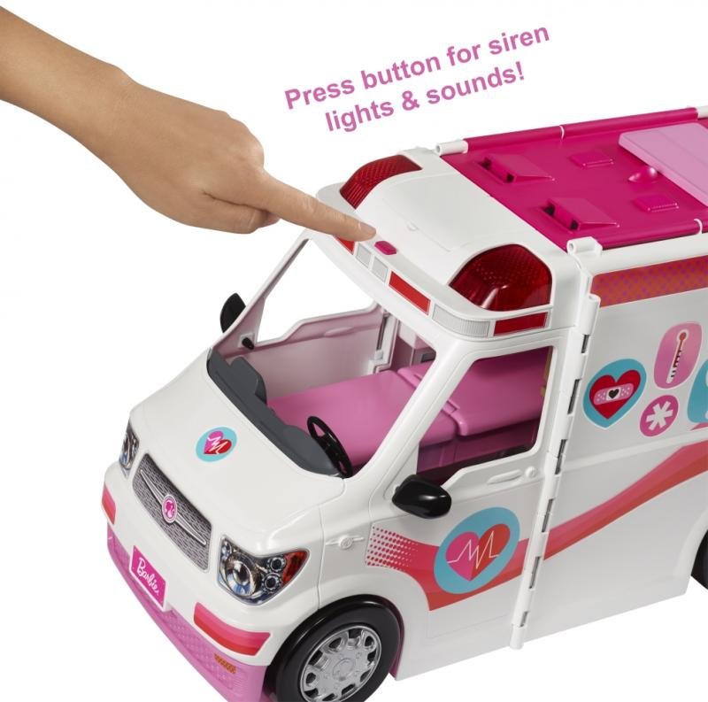 Připoj se k panence Barbie® a postarejte se společně o všechny pacienty v parádní pojízdné klinice! Stiskni tlačítko a aktivuj houkačku, ať všichni v okolí vědí, že už jste na cestě! Zvedni páčku v zadní části vozu a vůz se okamžitě promění v kliniku. Barbie® má ve své klinice veškeré vybavení a...
