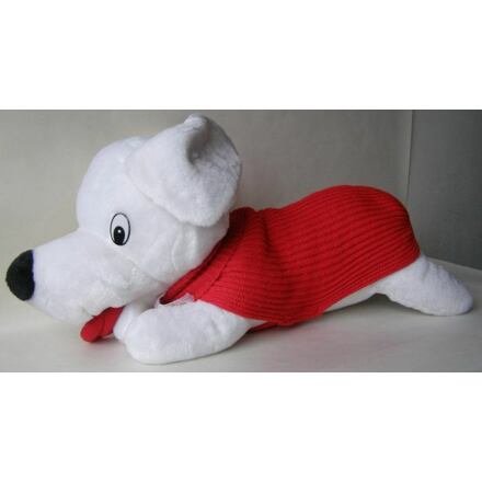 hřejivý rolák z pružného úpletu bez nohaviček s otvory na přední nohy zapínání na suchý zip na boční straně poutko na ocas lze prát na 30 °C materiál: 100% akryl barva: červená prečítať celé