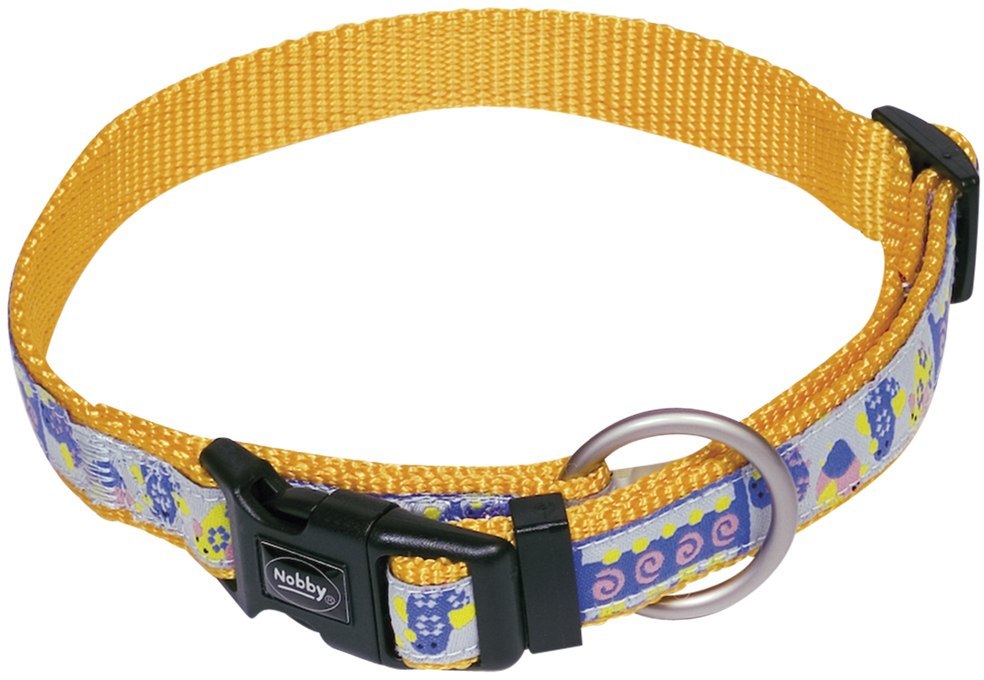 Kvalitní obojek Nobby vyrobený z pevného nylonu prošitý odolnou látkou v originálním vzoru. Obojek je vybavený kovovým kroužkem pro připnutí vodítka. Umístění kroužku zabraňuje přetížení spony tak, aby nedošlo k nežádoucímu rozpojení obojku. Velikost obojku je určená pro malá plemena psů. Obvod obojku je nastavitelný v rozmezí 22-35 cm. Šířka obojku: 15 mm Barva: oranžová