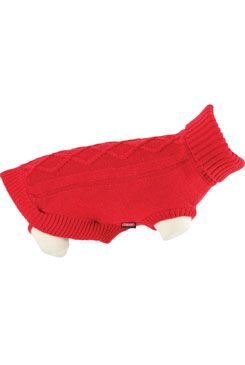 Jednobarevný rolák s copánkovým vzorem uprostřed zad a žebrovanými okraji. Obleček má intergrované otvory na obojek a na nohy.