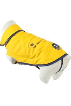 Nepromokavá pláštěnka, která ochrání vašeho psa před větrem a deštěm. Elegantní pruhovaná podšívka, suchý zip a elastický nastavitelný krk a hrudník. Integrovaný otvor pro vodítko a otvory pro nohy.