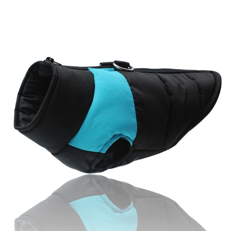 Moderní zimní vesta pro psy se zapínáním na zip. Obleček je z nepromokavého syntetického materiálu, který lze prát v pračce na 30°C. Lehčí znečištění vyčistíte vlhkým hadříkem.Obleček chrání nejdůležitější svalové skupiny psa, jako je h... Moderní zimní vesta pro psy se zapínáním na zip. Obleček...