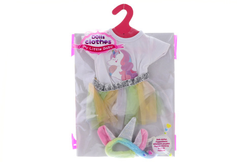 Oblečení pro panenku - sada obsahuje bodáčko a obrázkem jednorožce, tutu sukýnku v duhových barvách a čelenku a jednorožčím rohem.. Rozměry bodýčka - délka 20 cm, šířka 12 cm (bezrukávků), rozměry sukýnky 13,5x11 cm. Baleno v sáčku. Věk 3+ prečítať celé