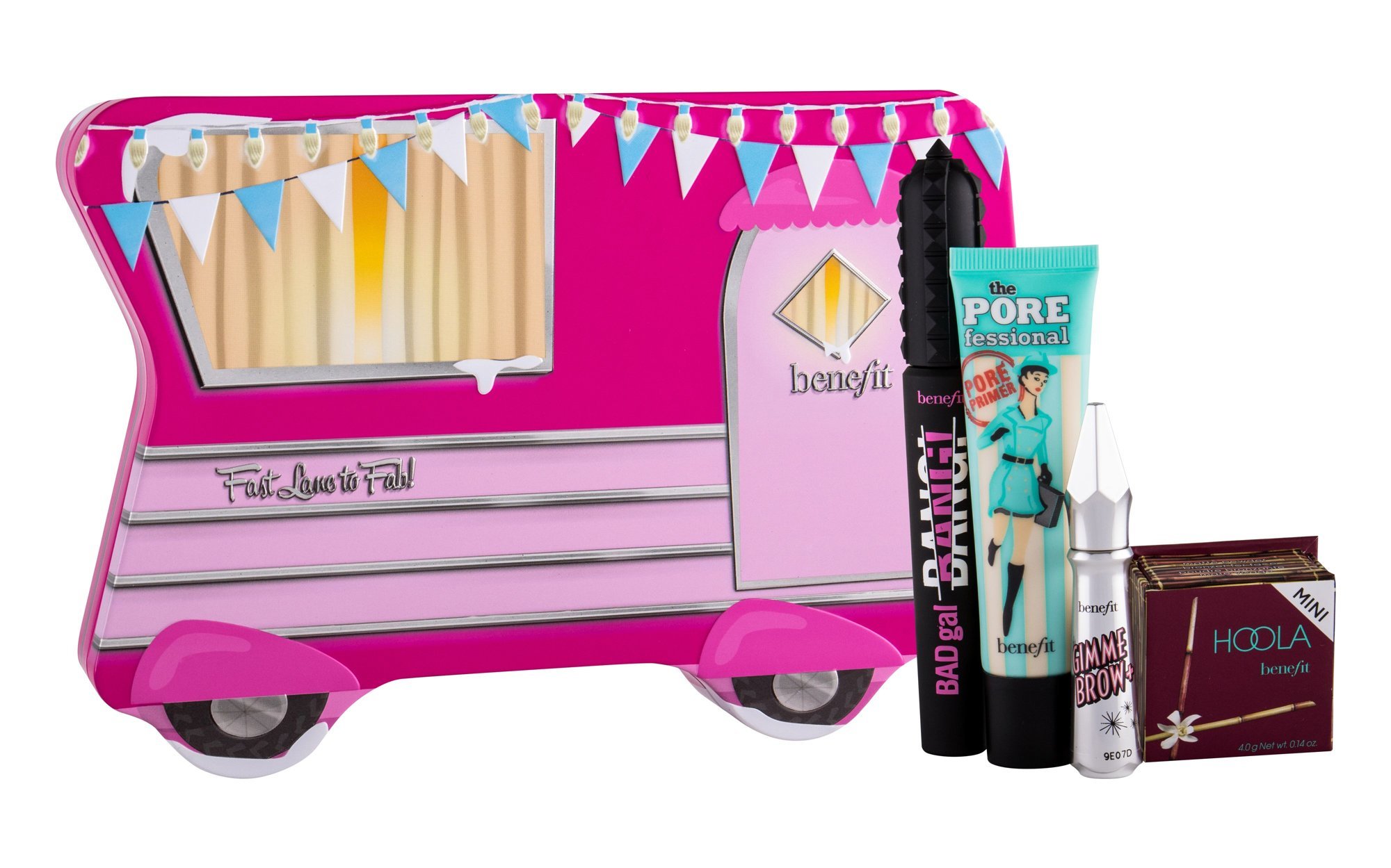 Benefit Bad Gal řasenka 8,5 g + gel na obočí Gimme Brow 3 g 3 + podkladová báze pod makeup Pore Primer 22 ml + pudrový bronzer Hoola 4 g Hoola + plechová krabička