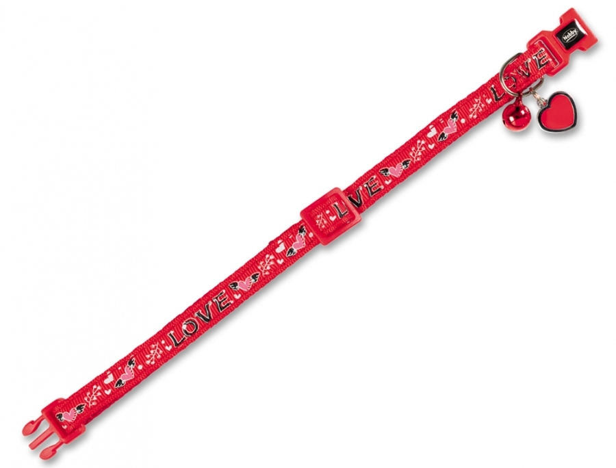 Nobby Love červený obojek pro kočku s přívěskem a rolničkou