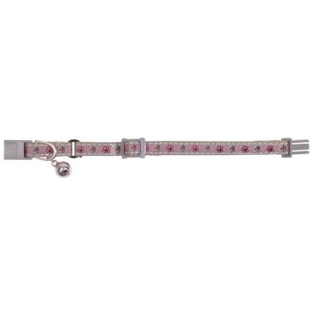 Reflexní obojek pro koťata s rolničkou, šedo/růžový s kytičk