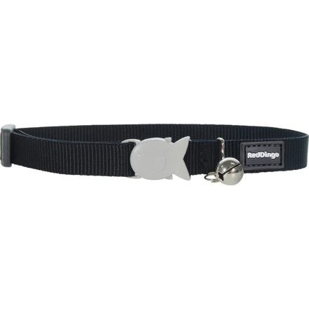 Tento čierny jednofarebný obojok pre mačky je navrhnutý tak, aby spĺňal všetky potreby aktívnych mačiek i ich majiteľov. Vyrobený z kvalitného nylonového popruhu s hustým tkaním okrajov je nielen odolný, ale aj príjemný na dotyk. Vďaka originálnej plastovej bezpečnostnej sponke v tvare rybičky sa pri väčšom zaťažení sponka bezpečne rozopne, takže sa vaša mačka nezraní, ak by niekde uviazla.