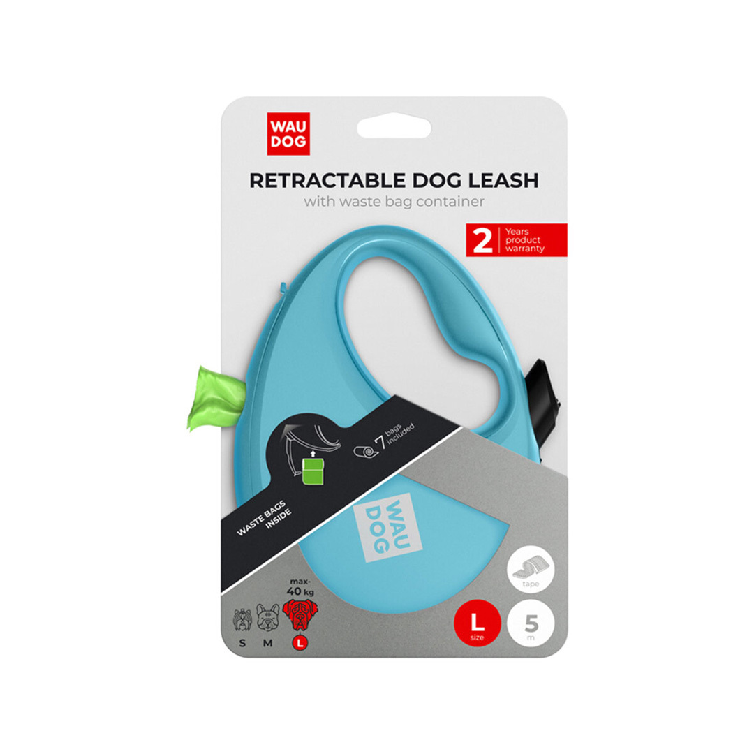 WAUDOG vodítko samonavíjecí se zásobníkem na sáčky Modré 40kg/5m/L