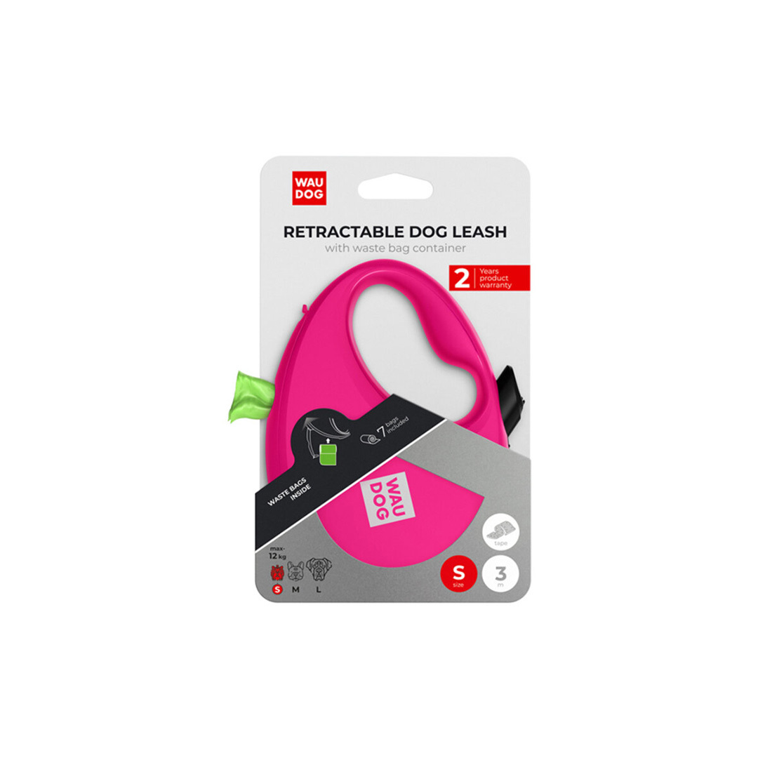 WAUDOG vodítko samonavíjecí se zásobníkem na sáčky Růžové 12kg/3m/S