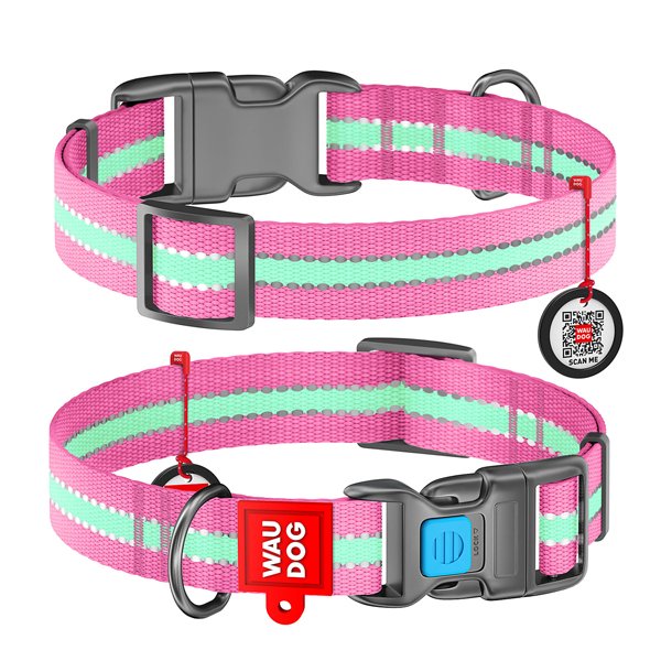 Obojek nylonový Waudog Glow růžový QR (31-49cm/2,5cm)
