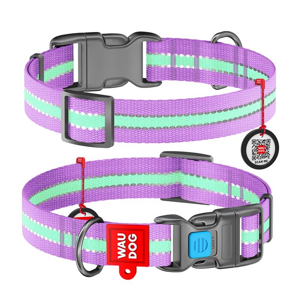 Obojek nylonový Waudog Glow fialový QR (31-49cm/2,5cm)