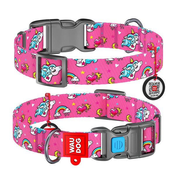 Obojek nylonový Waudog Jednorožec QR (35-58cm/2,5cm)