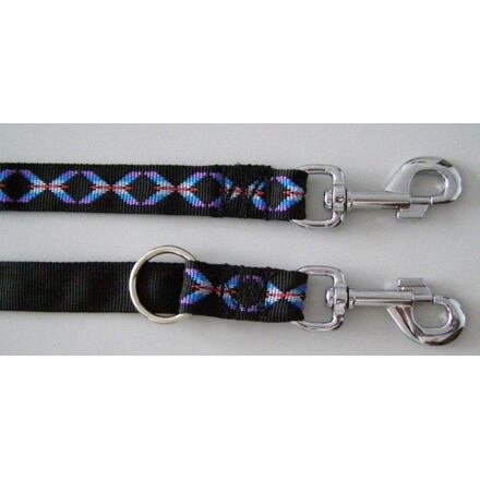 prodlužovací s možností nastavení délky pomocí 2 karabin a D-kroužku černý popruh s moderním vzorem na líci materiál: nylon rozměry: 2 m barva: různá prečítať celé