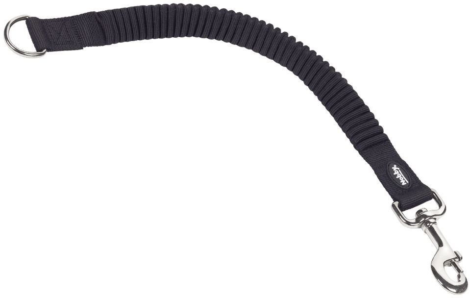 Přídavný amortizér (tlumič tahu) na vodítko. Tlumič tahu je nylonové vodítko s integrovanou elastickou vložkou, která při cukání v tahu tlumí nárazy a tím chrání klouby a páteř psa i jeho pána. Délka 45cm, šíře 25mm. Barva černá. Tento doplněk je vhodný např. pro běhání či jízdu na kole se psem, ale skvěle ho využijete i na běžnou procházku. Jednoduše připojte mezi obojek a vodítko.
